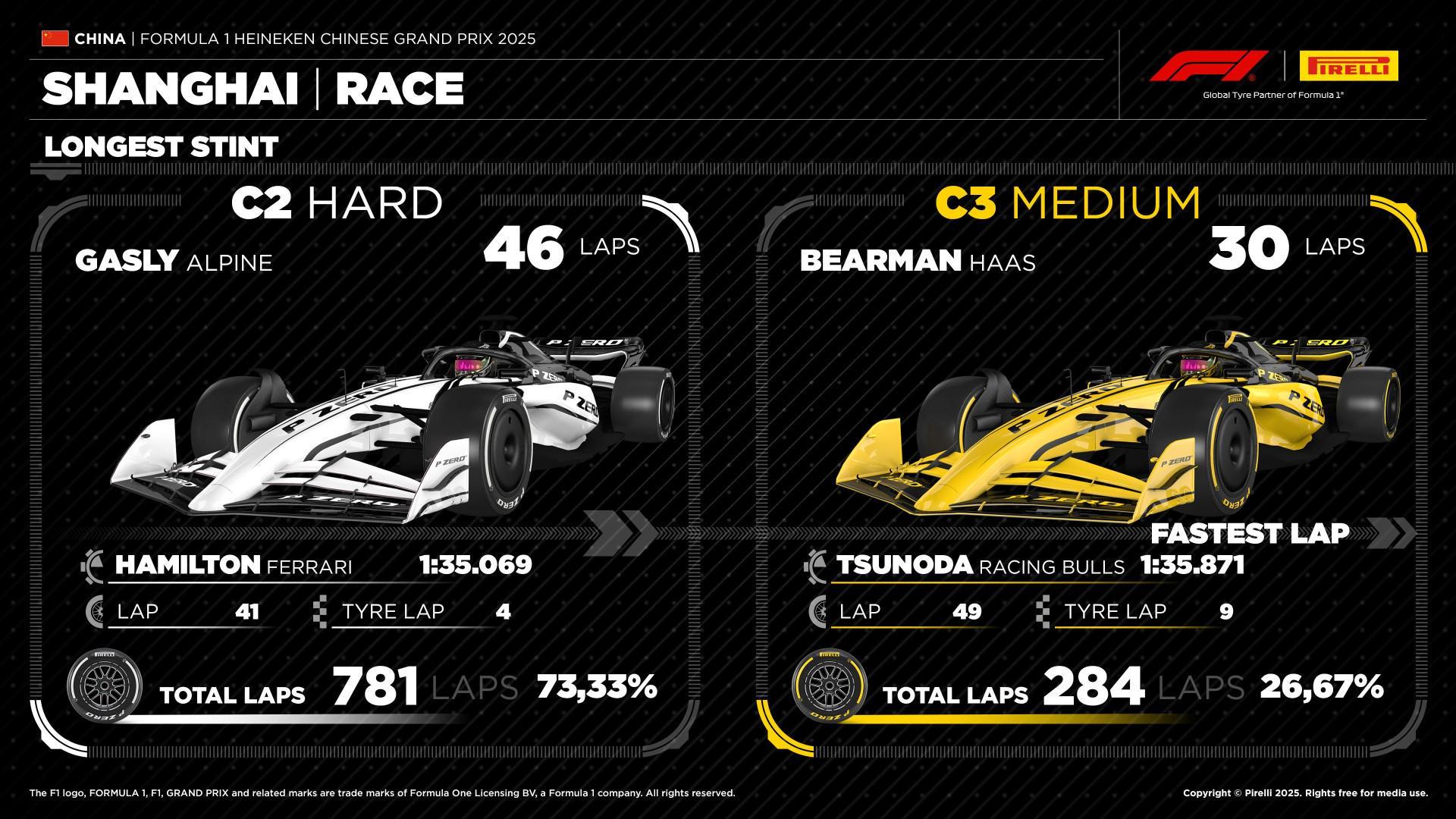 去年白胎最长使用时间为加斯利跑出的46圈,贝尔曼用黄胎跑了最久,共30圈。
