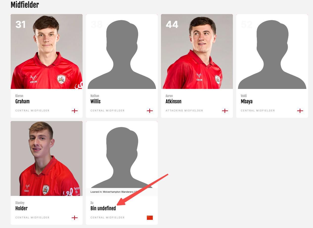 巴恩斯利在官网的U21球员表里添加了徐彬的姓名,不过目前已经删除,暂不清楚是否会有下一步的调整。